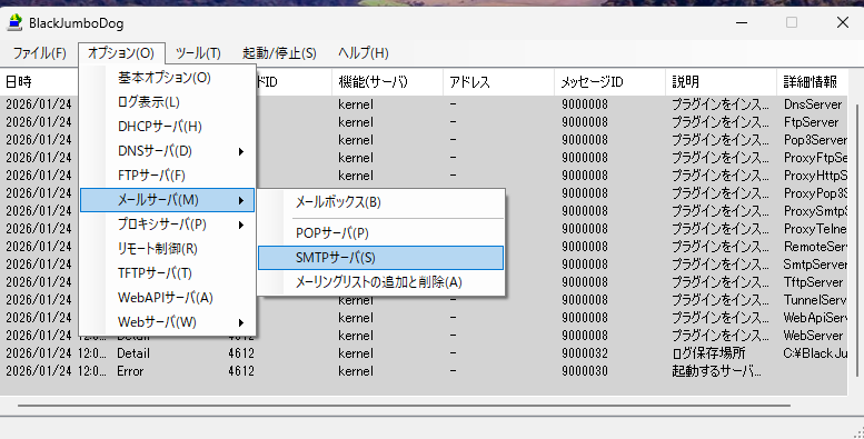 • BlackJumboDogでSMTP/POPサーバーを構築