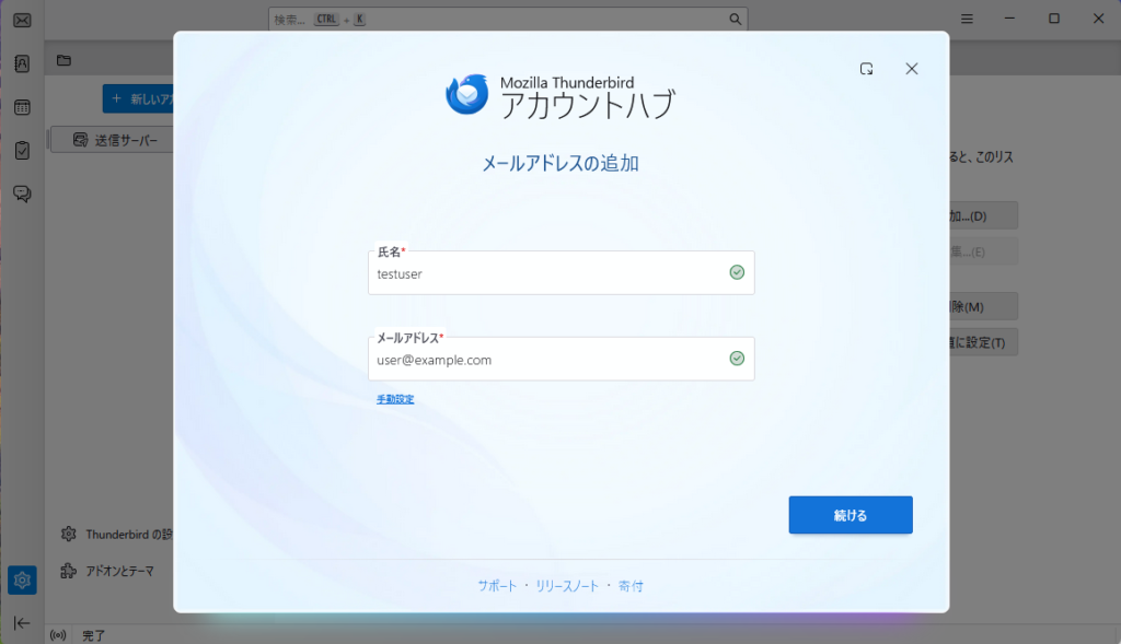 • ユーザー名はBlackJumboDogとThunderbirdで一致させる