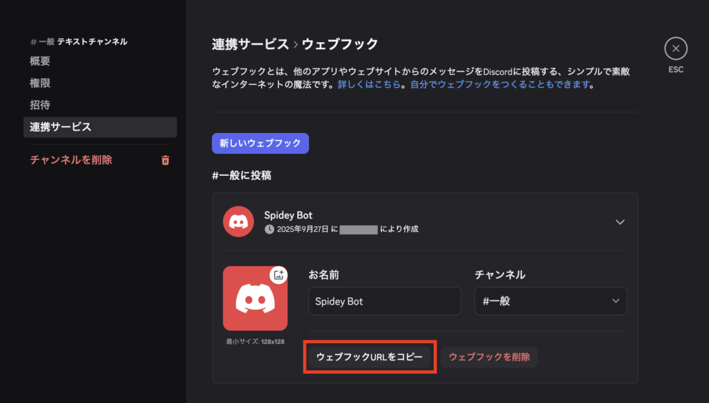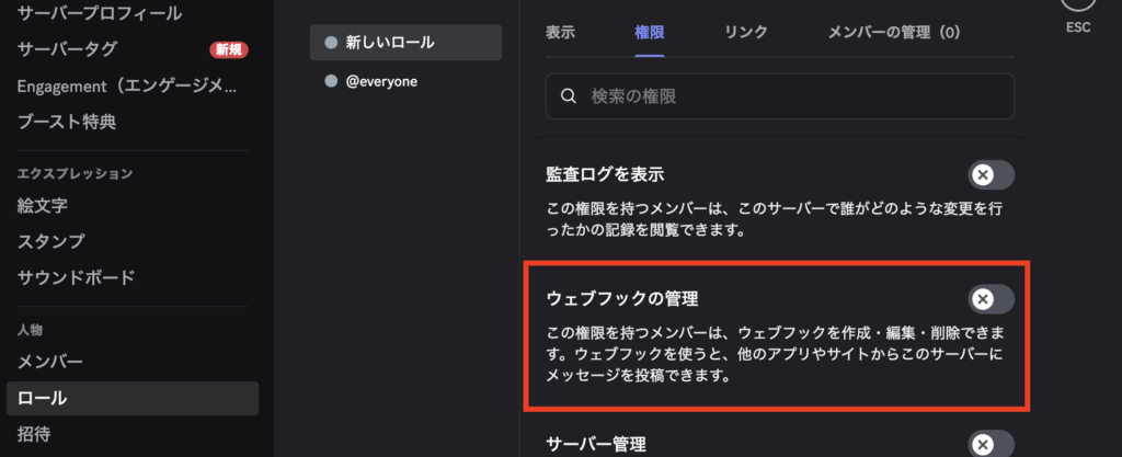 結論:そのサーバ/チャンネルで「Manage Webhooks(ウェブフックの管理)」権限がある人だけが作成・編集できます。