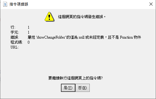 プロパティ 'showChangeFolder' の値は null または未定義で、