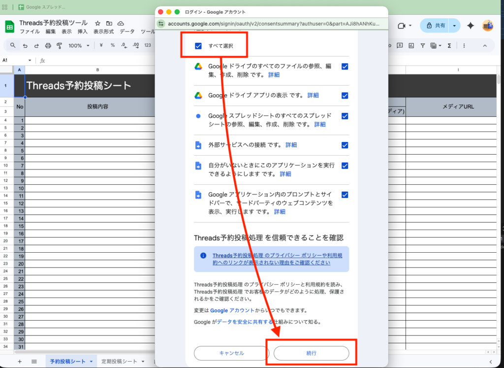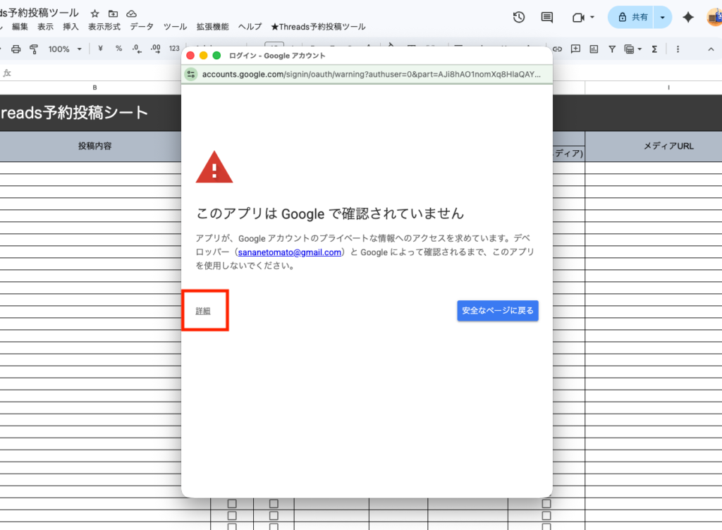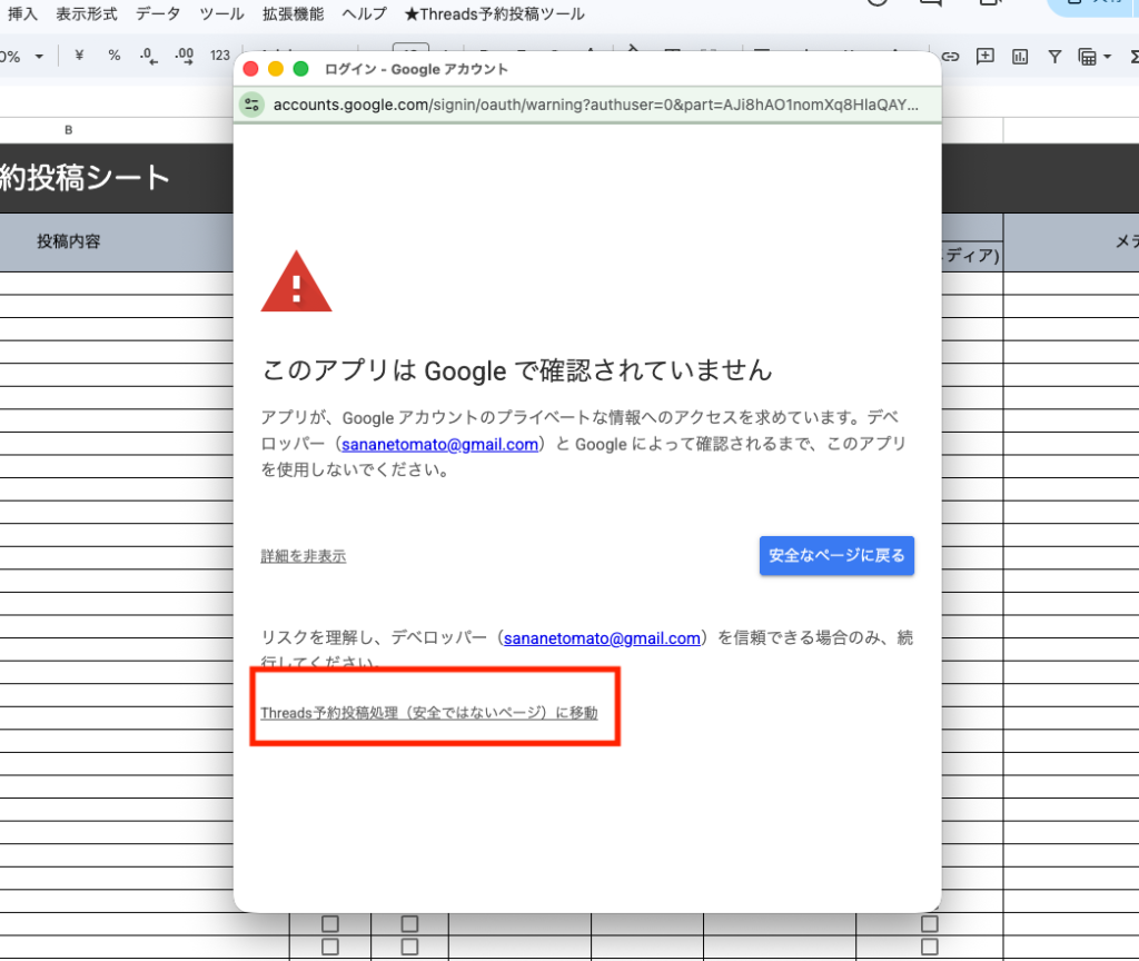 - [Threads予約投稿処理(安全ではないページ)]をクリック