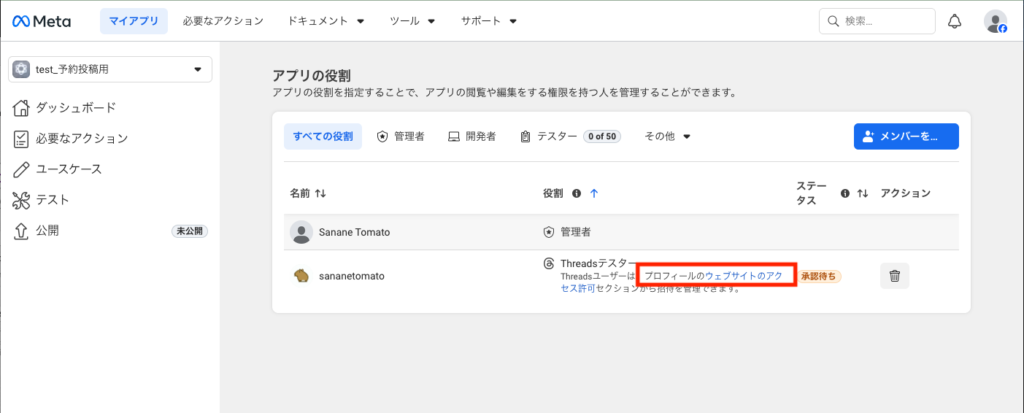 追加したテスターのThreadsアカウントでThreadsにアクセスします。