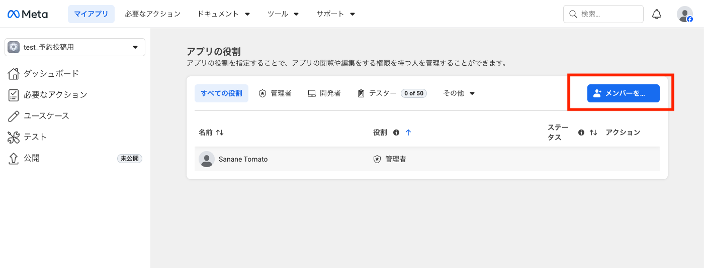 3. Meta開発者ポータル:認証情報発行