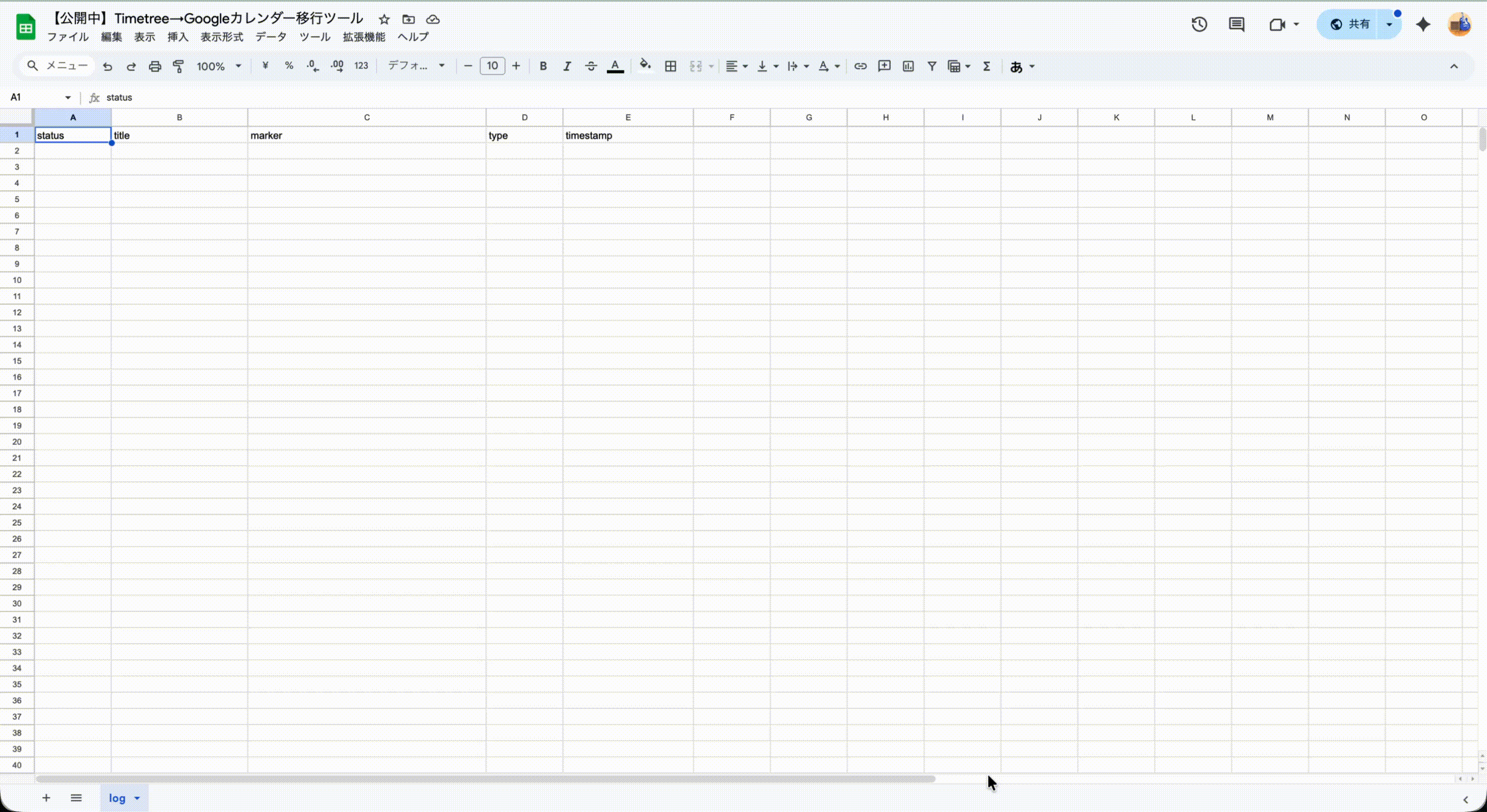 - スプレッドシートの「log」シートに処理履歴が記録されます